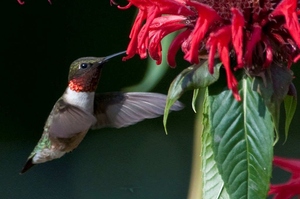 While foraging for nectar the hummingbird simultaneously contaminates itself with pollen particles from the flower. The pollen sticks to the birds’ feathers and beak, allowing the bird to transport it to the next flower it visits. Once that pollen comes in to contact with a new flower, the plant is inadvertently cross-pollinated, allowing the plant to reproduce. The abundance of Ruby Throated Hummingbirds make them an integral pollinator to ecosystems across the eastern United States and parts of Canada. Partners for flight, an organization that tracks land birds for conservation purposes, estimates the Ruby Throated Hummingbird population in North America and Canada is as great as 34 million.